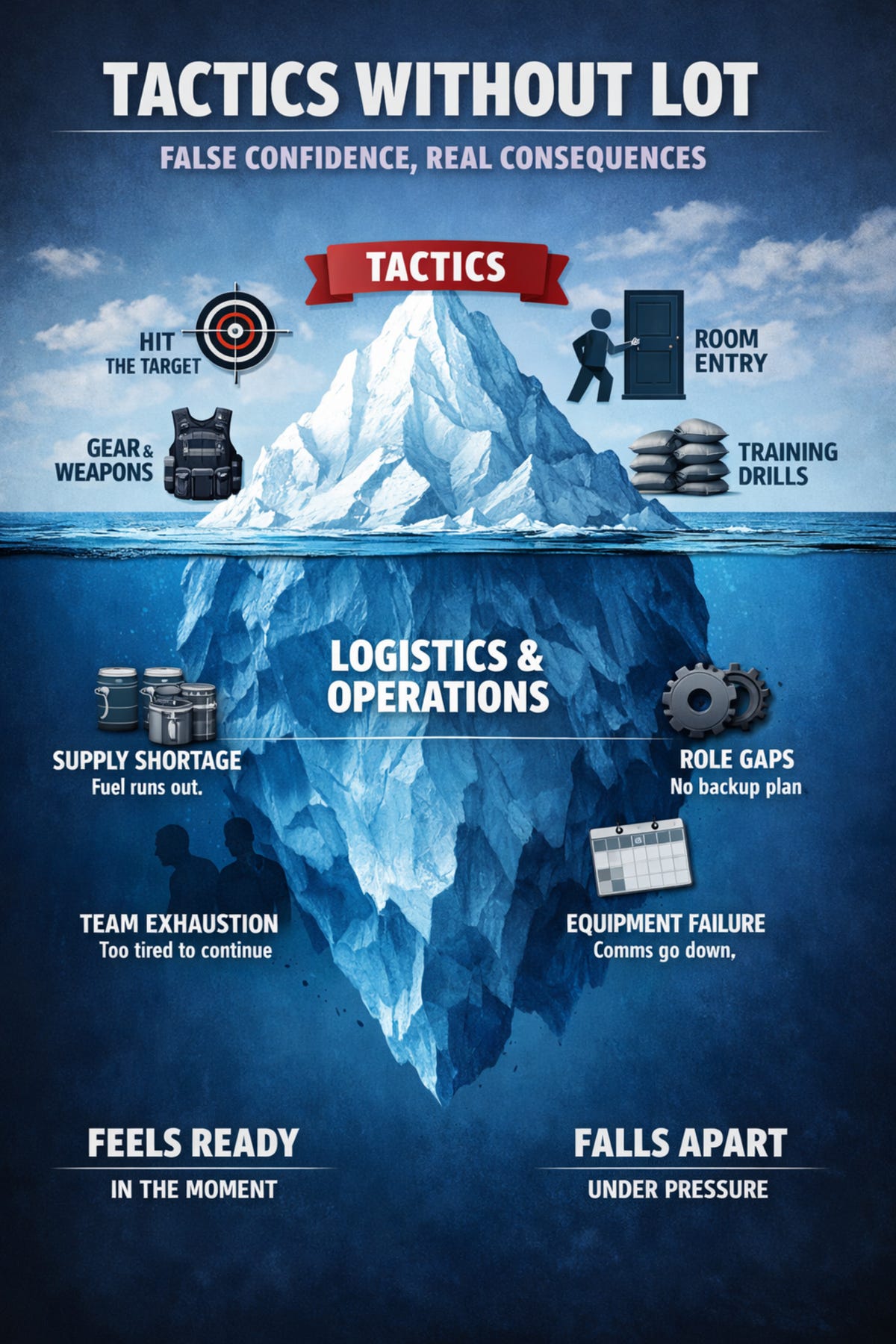 Figure: Tactical actions feel decisive above the surface, but without Logistics and Operations beneath them, confidence collapses under pressure.